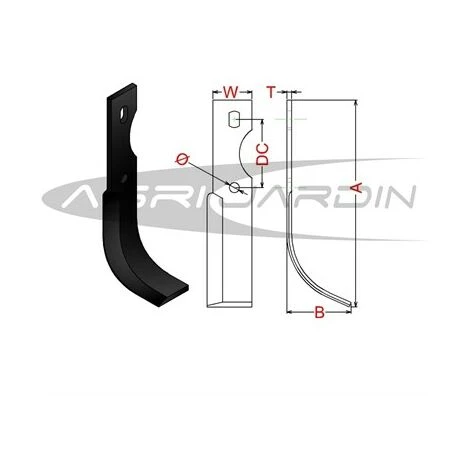 - Le couteau de fraise gauche RIBAS est spécialement conçu pour les motobineuses VOLPINO, BENASSI et ROTECO, assurant une performance optimale.