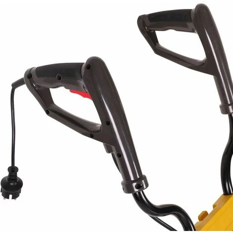 Cette petite mobineuse électrique dispose du système de sécurité à double gâchettes, ainsi quand vous relâchez soit l’interrupteur ou soit la manette d’accélération, le moteur se coupe et provoque l’arrêt des fraises.
