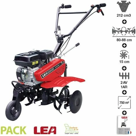 - Labour assuré par des fraises boulonnées. Disque de protection à l’extérieur des fraises pour protéger les plants de votre jardin. Idéal pour les grands jardins jusqu’à 1000m². Autonomie de travail proche de 2 heures avec un plein. Existe aussi en pack avec roues + charrue LE42212-80W21#KIT2.